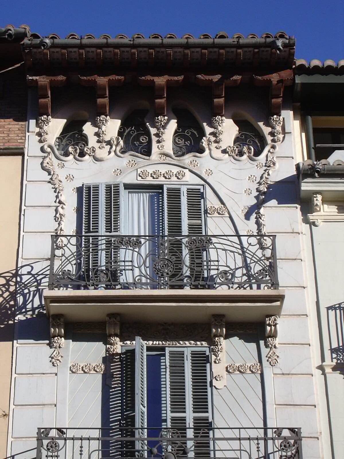 Nur wenige Meter entfernt zeigt das Casa La Madrileña, wie sich der Modernismus an enge Grundstücke anpassen konnte. Seine hellblaue Fassade, geschmückt mit Girlanden und dekorativen Ovalen, ist ein architektonisches Bonbon, das Passanten überrascht.